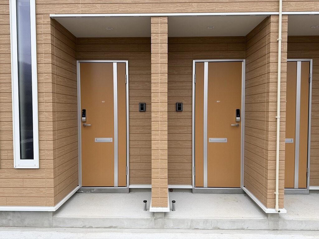 設備公営水道、公共下水道、システムキッチン、シャワー付洗面化粧台、バストイレ別、追焚機能付浴室、温水洗浄便座、照明付、シューズボックス、エアコン2台~、インターネット、電子錠、プロパンガス、室内物干、消雪駐車場、駐輪場、物置等
