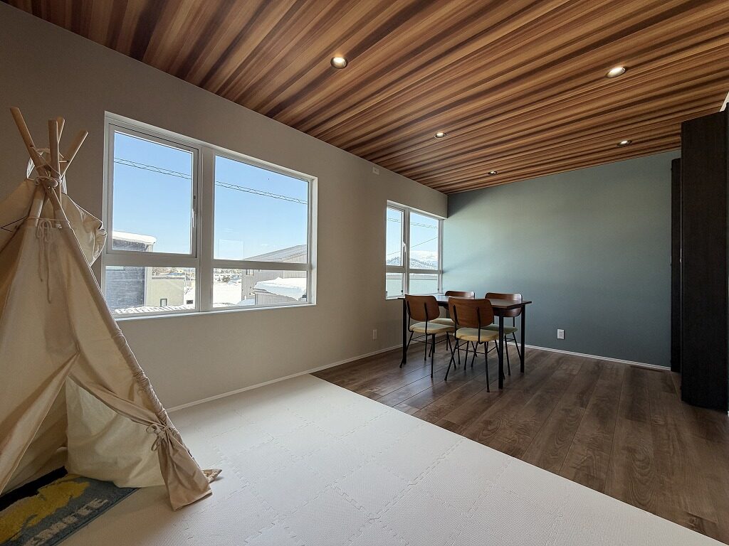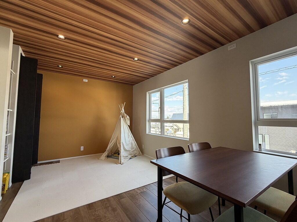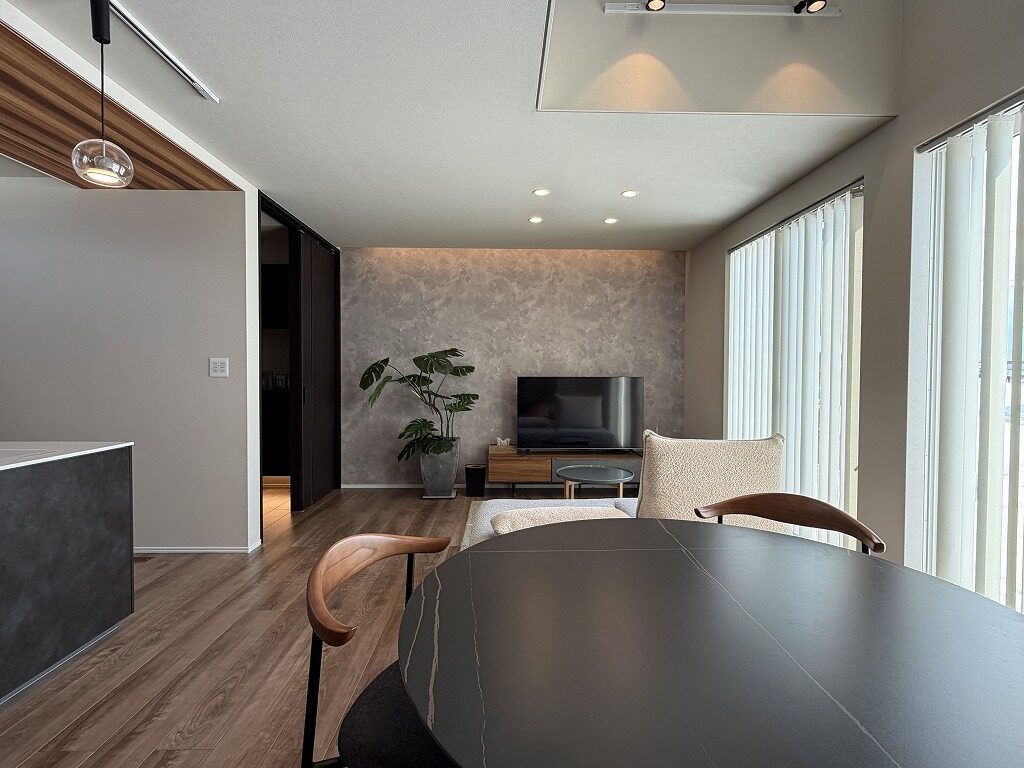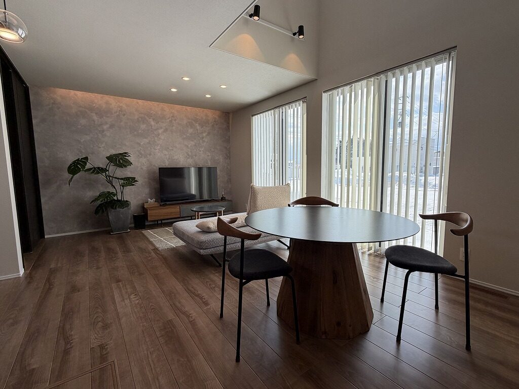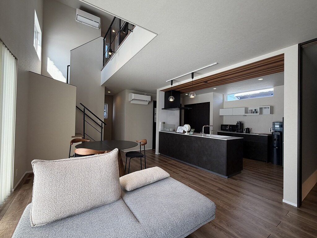 国道13号線近く、中田町分譲地「Livliss中田」内に建つモデルハウスです。 スーパー・ドラッグストア・ホームセンターが揃う利便性の高いエリアで、山形・福島方面へのアクセスも良好です。 建物は、太陽光発電と大容量蓄電池を備えたスマートハウス。 気圧調整式の換気システム「エクリア」により、エアコン1台で一年を通して快適にお過ごしいただけます。 間取りは3~4人家族にちょうど良い3LDK。吹抜けのある明るく開放的なLDKが、1階と2階をゆるやかにつなげ、家のどこにいても家族の気配を感じられます。 集中した水回りと回遊できるキッチンで、日々の家事もスムーズに。内装や照明計画にもモデルハウスならではのこだわりが随所に見られます。 インナーガレージやゆったりとしたバルコニー、ライフスタイルに合わせて仕切れるお部屋も備えた設計で、家族の成長と共に長く快適に暮らしていただける住まいです。 外構まで整えられているのも嬉しいポイントです。