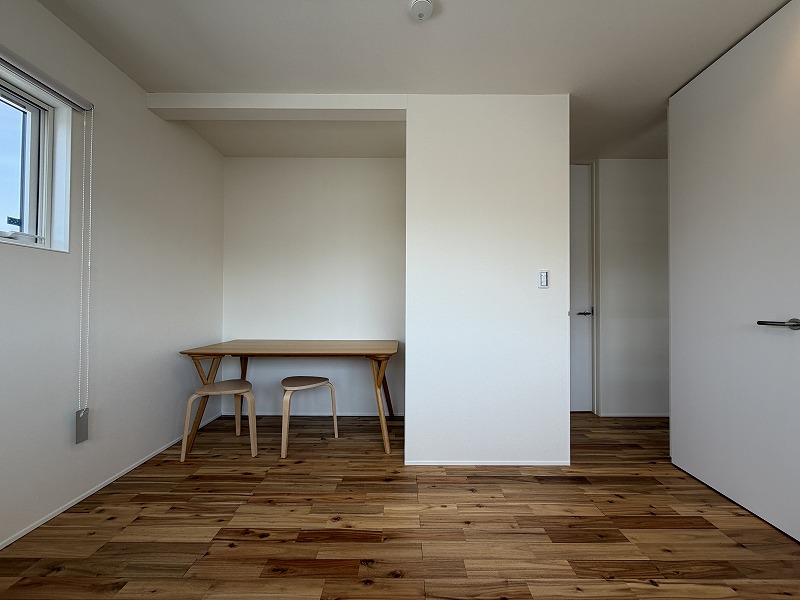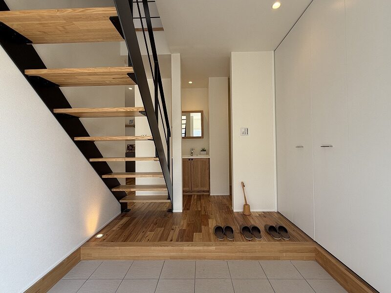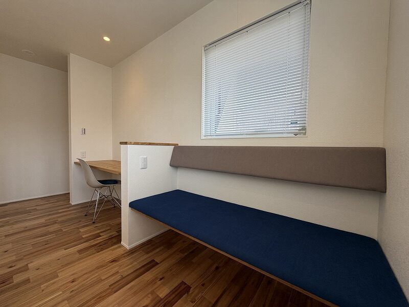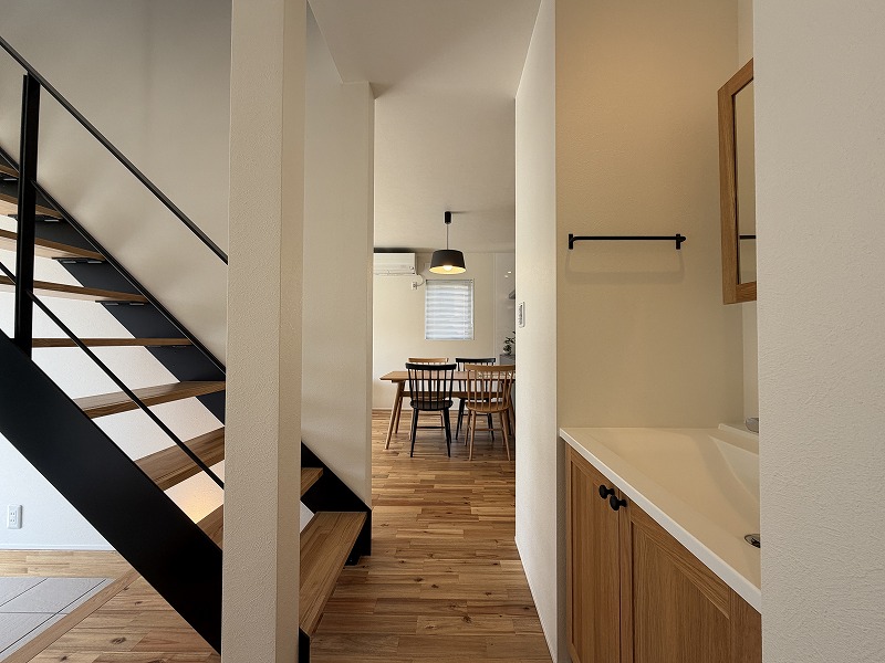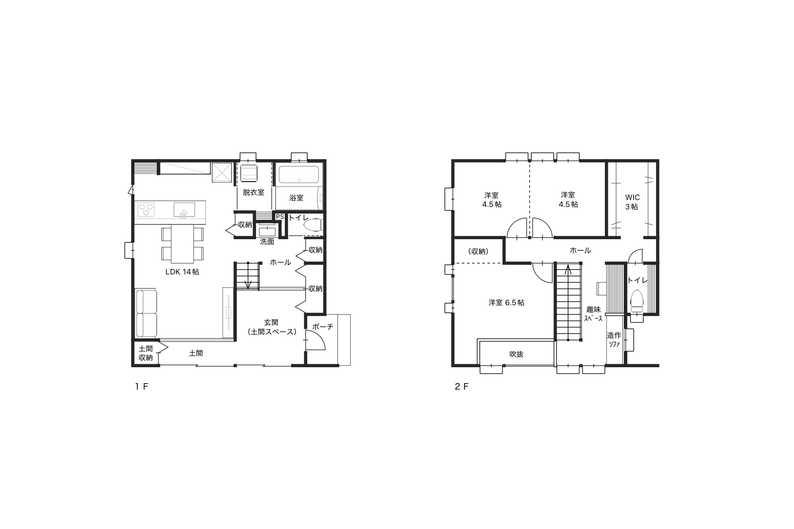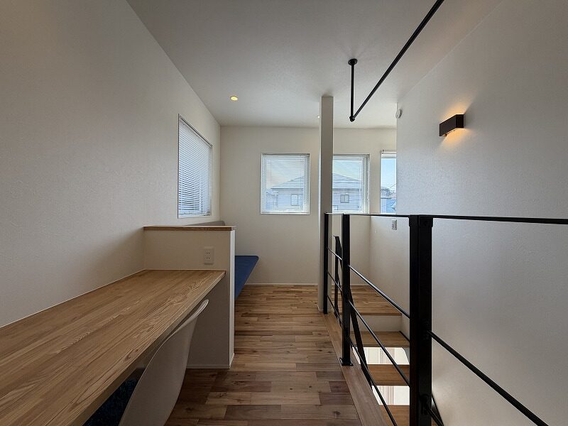 白を基調に、黒いガルバリウム外壁が映える印象的な外観。 アトリエ建築家によって設計された、デザイン性と暮らしやすさを兼ね備えた住まいです。 やまがた省エネ健康住宅の認証を受けた高気密・高断熱仕様で、季節を通して心地よくお過ごしいただけます。 玄関からリビングまで続く広い土間は、南面の大きな窓からたっぷりと光が差し込む明るく開放的な空間です。 土間・ホール・LDKが仕切りなくつながり、どこにいても空間の広がりを感じられます。 2階は2部屋(うち1室は間仕切ることで増室可能)とウォークインクローゼット。 ホールには造作のソファとカウンターが設けられており、読書やひとり時間を楽しめる、もうひとつの居場所となっています。 吹抜けやスケルトン階段など、空間に奥行きをもたらす設計も随所に。 細部にまで住まいとしての完成度の高さが感じられます。 立地は閑静な住宅地。落ち着いた環境でありながら、米沢駅やスーパー、国道・高速ICへのアクセスも良好です。 敷地や接道はゆとりがあり、冬場の車の出入りも安心です。