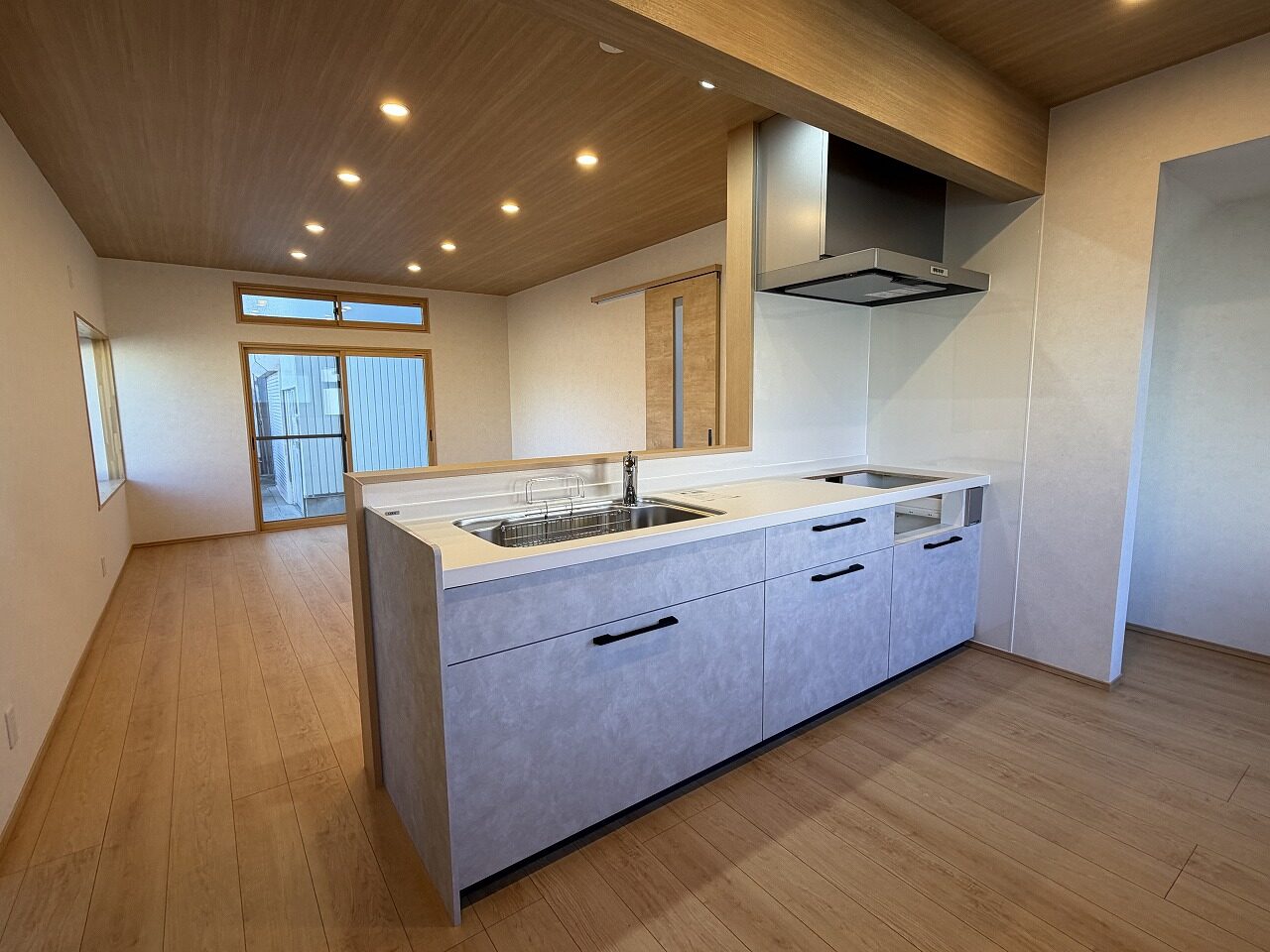 設備公営水道、公共下水道、システムキッチン、ユニットバス、シャワー付き洗面化粧台、温水洗浄便座、追炊き給湯、テレビドアホン、ディンプルキー、ダブルロックドア、照明器具、火災警報器(報知機)、複層ガラス、車庫兼物置等