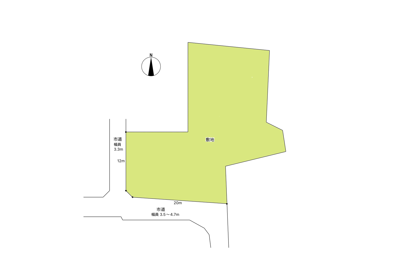 接道南側 公道3.5~4.7m 西側 公道3.3m