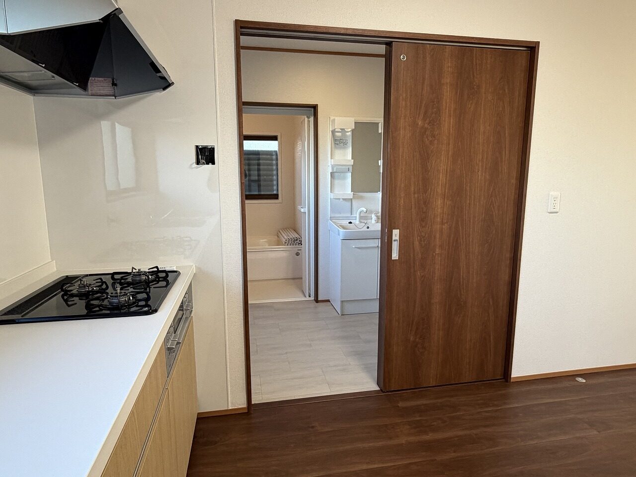 設備公営水道、浄化槽排水、個別LPガス、システムキッチン、ユニットバス、洗浄便座、追炊き給湯、トイレ2ヶ所、テレビドアホン、シューズボックス、LED照明、火災警報器(報知機)、バルコニー、勝手口物置、瑕疵保証付等